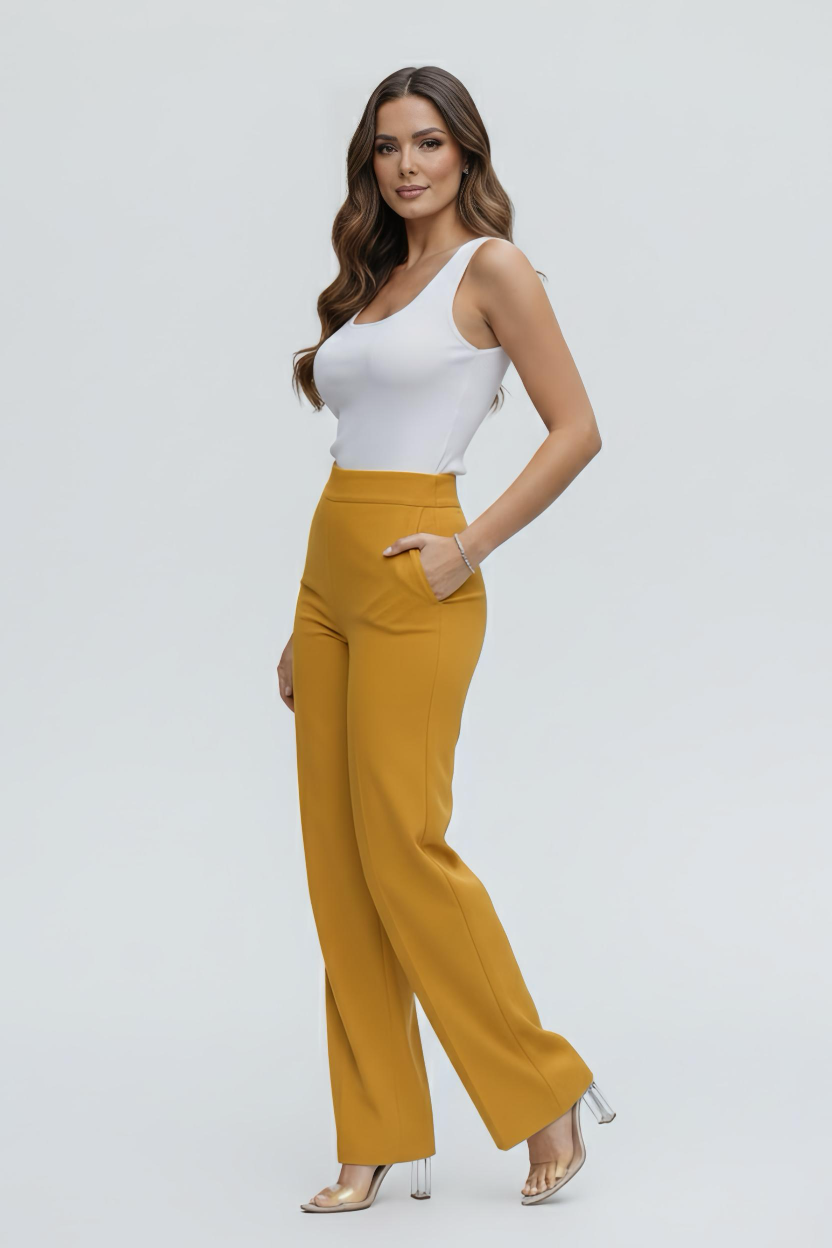 Add a bold touch of warmth to your wardrobe with the Mustard Wide Leg Trouser, tailored with a flattering high waist and sleek wide leg. Finished with a hidden front zip and button closure, this vibrant, versatile piece pairs beautifully with neutral knits or crisp tops for day-to-night style.