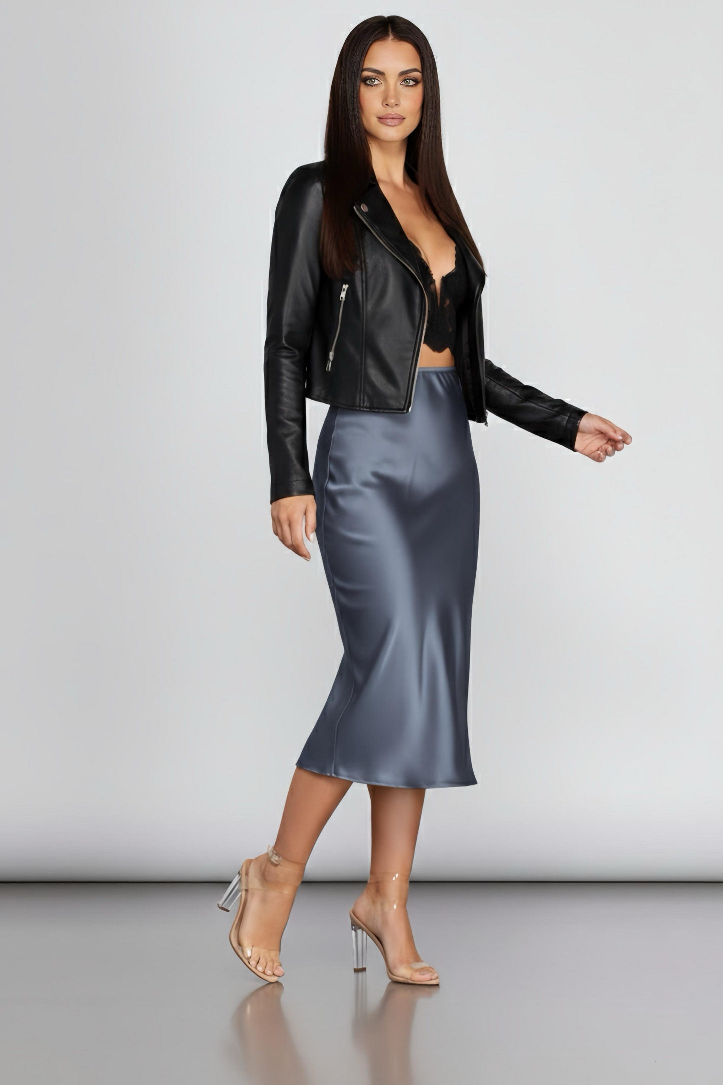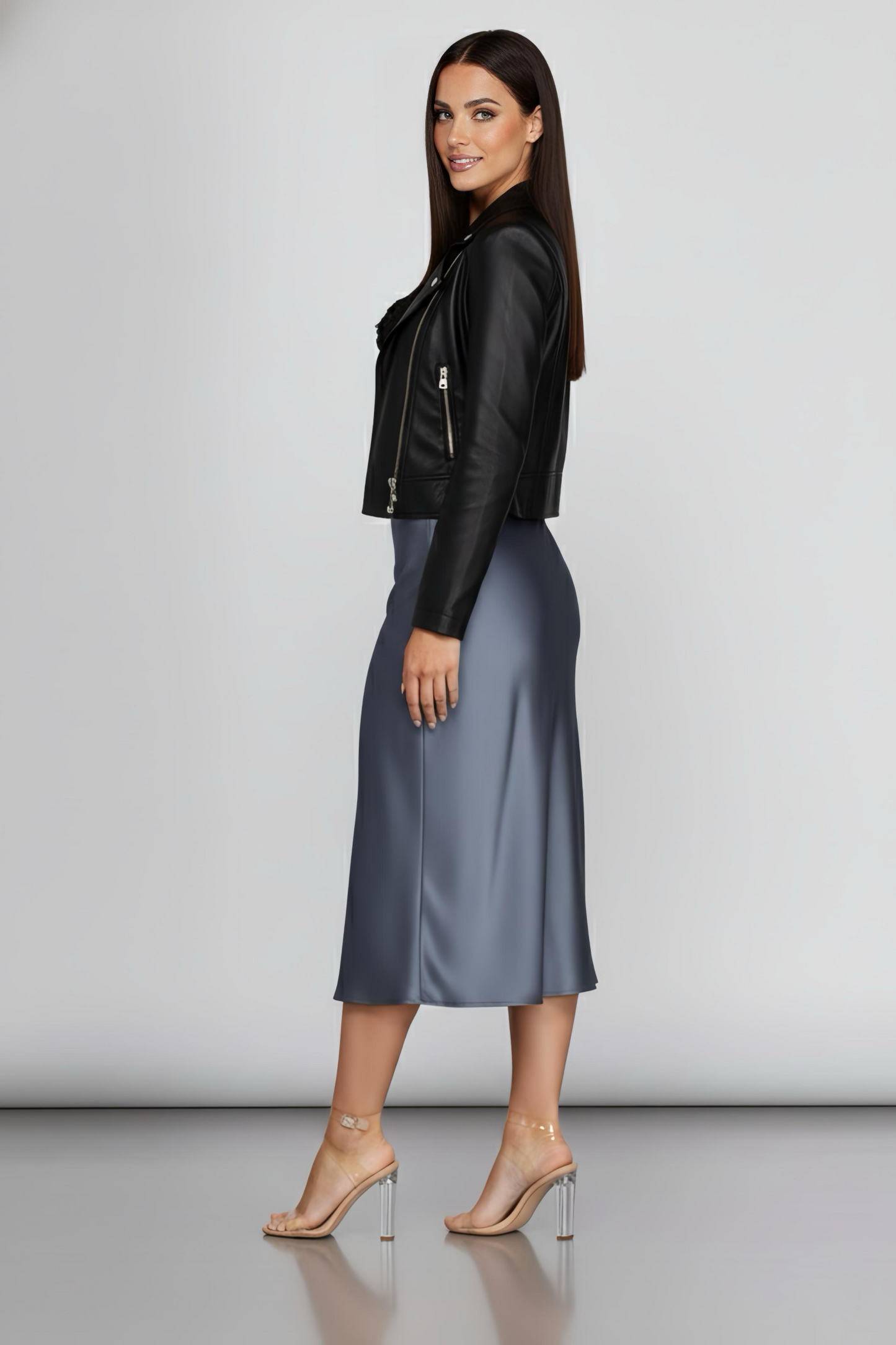 MERA GREY BLUE FLOWY SATIN SKIRT