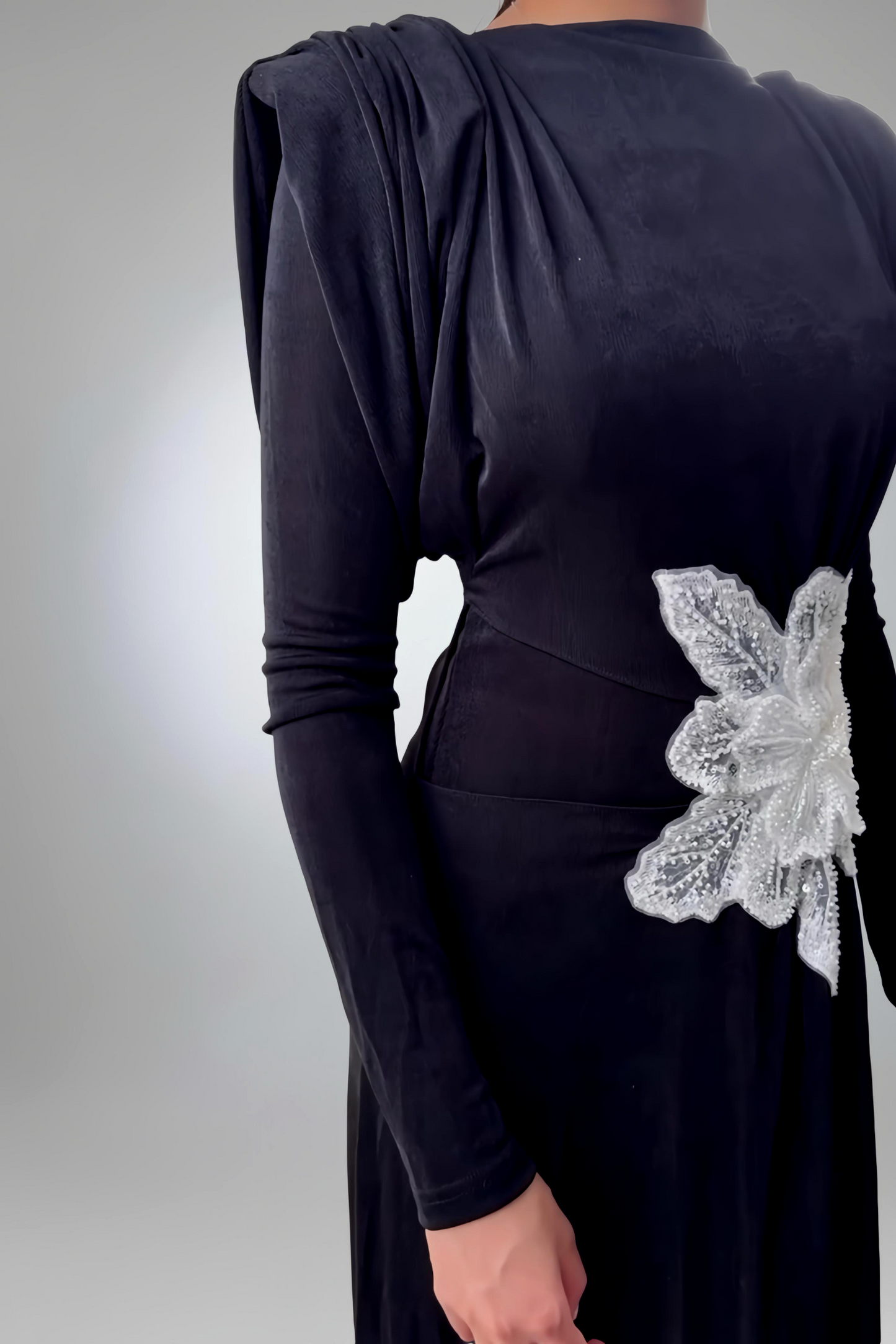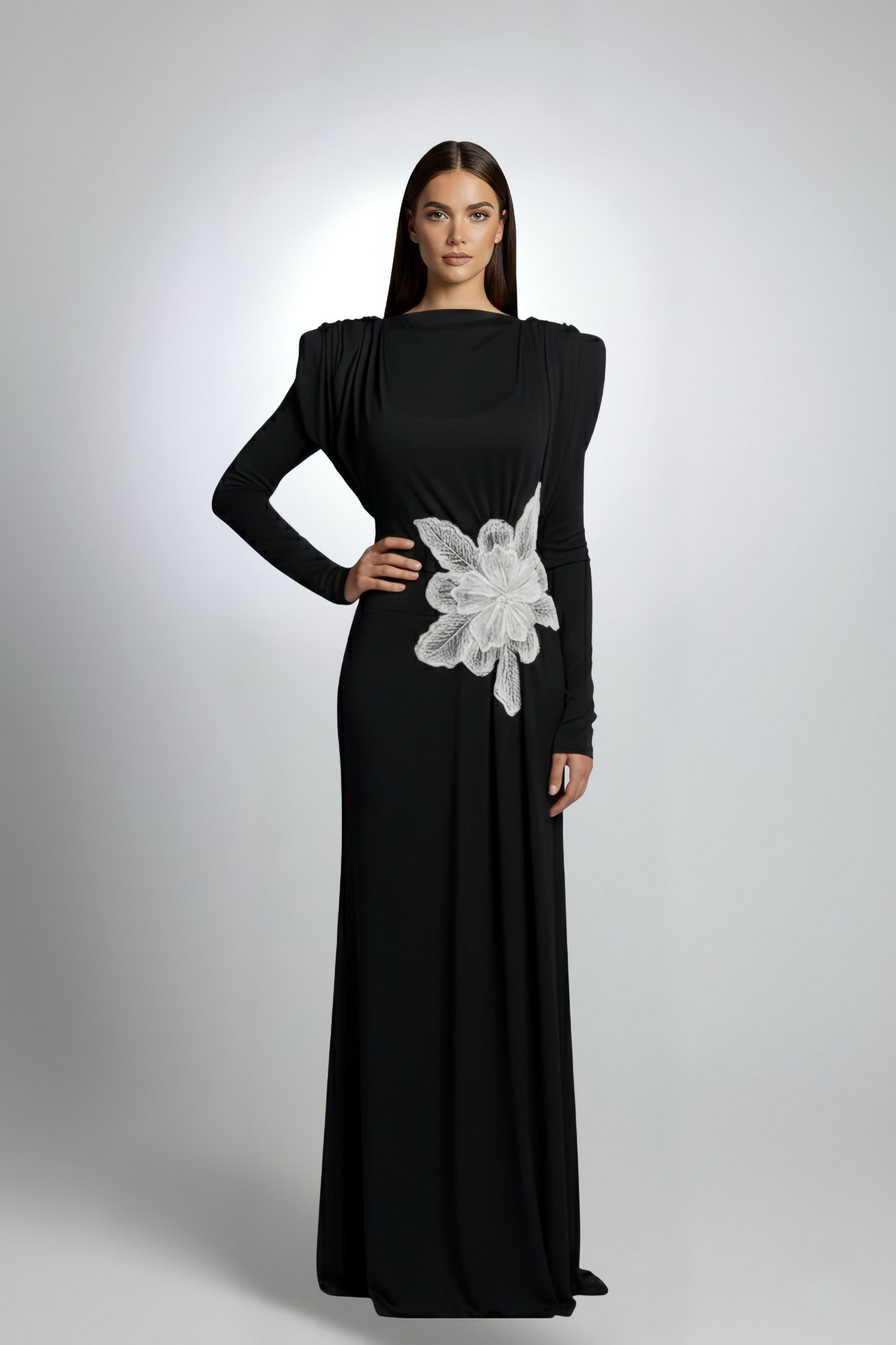 PATRA MAXI – BLACK WITH WHITE FLOWER