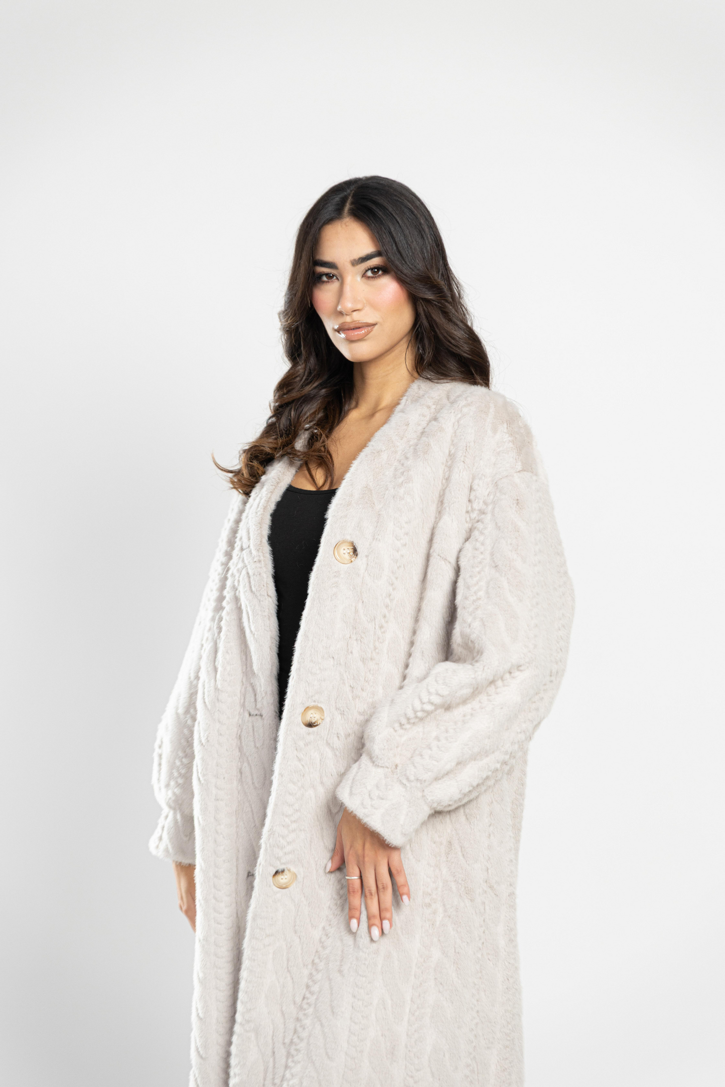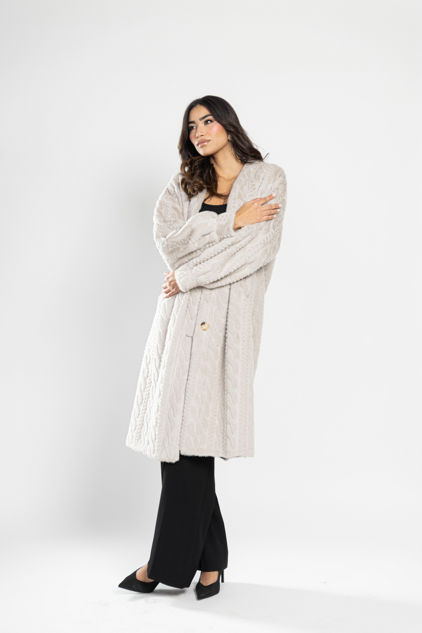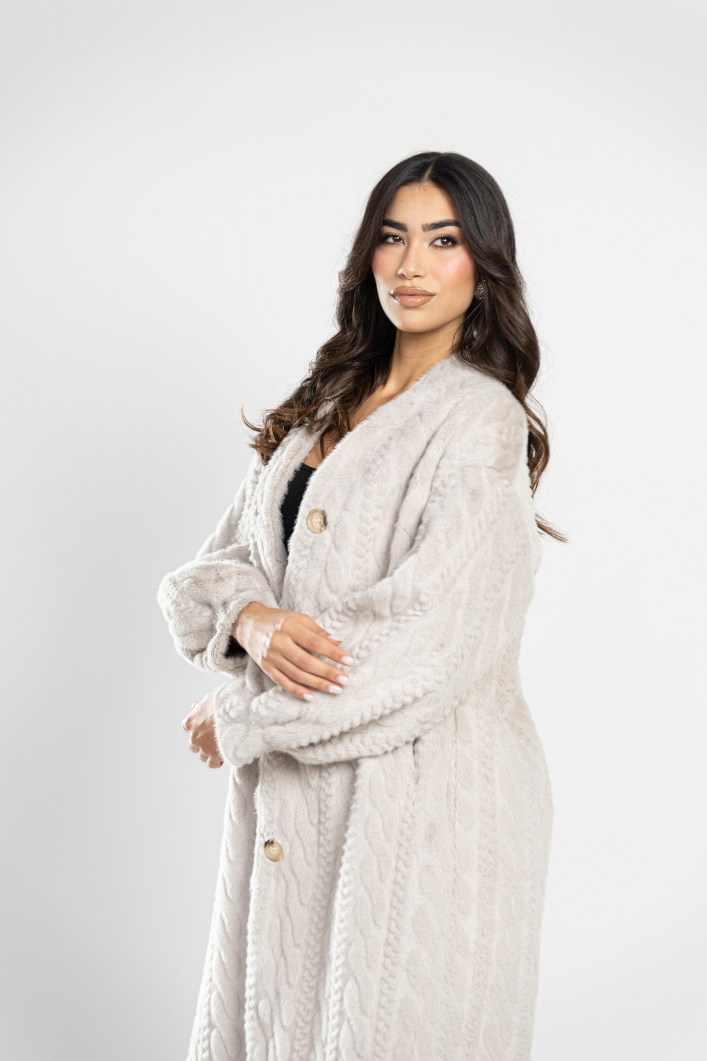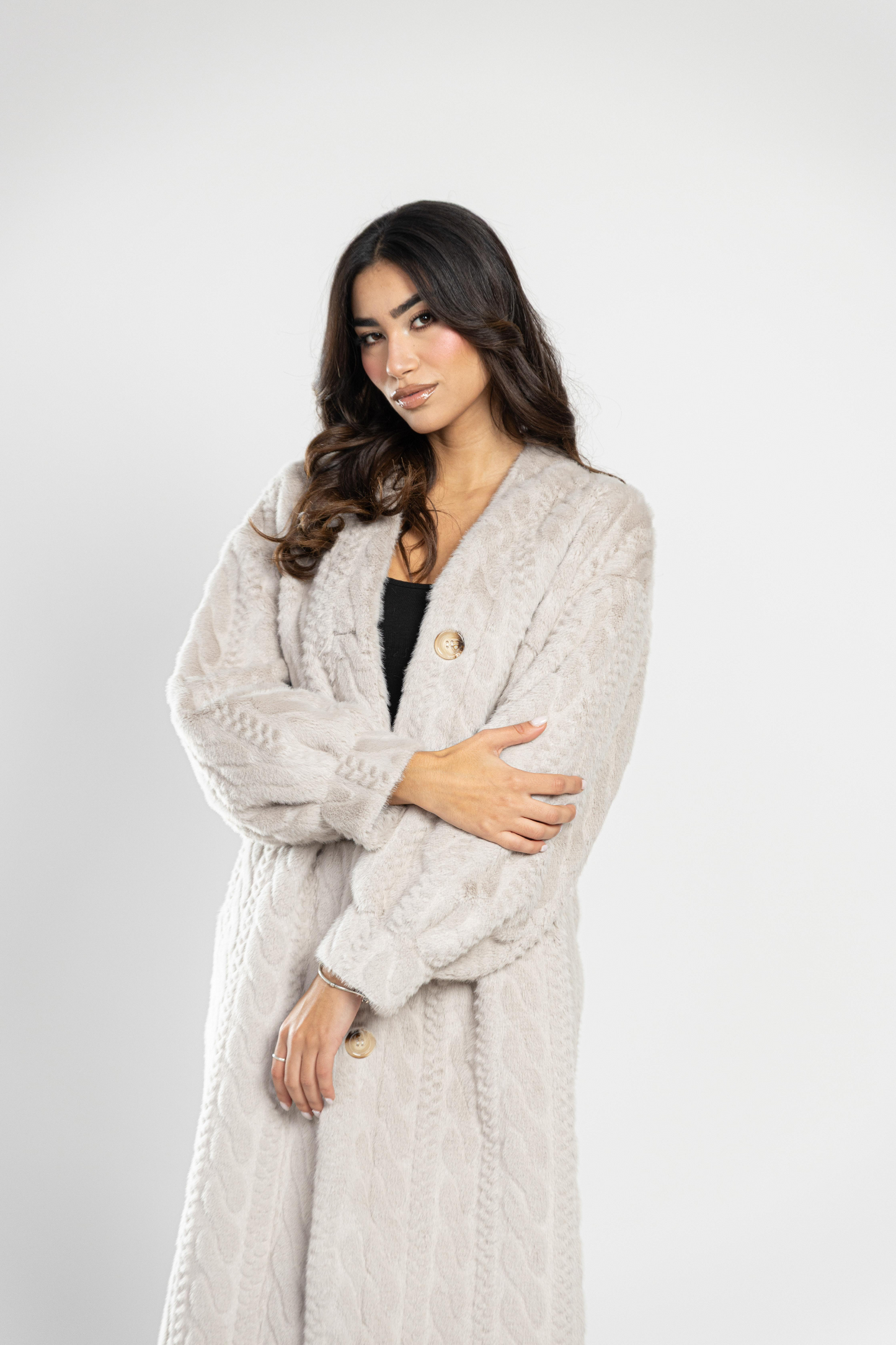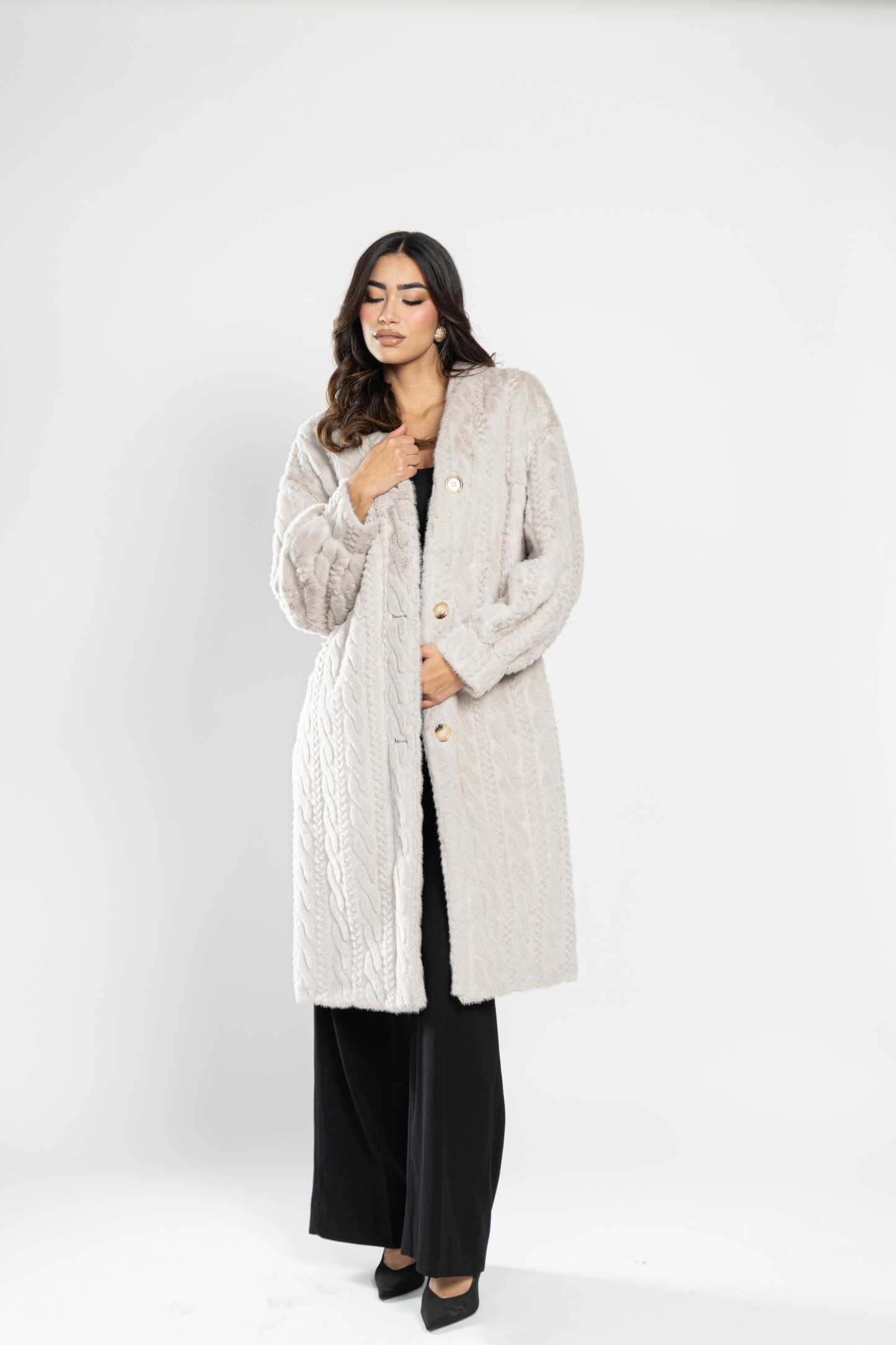 WINTER LUXE GREY VEGAN FUR LONG COAT