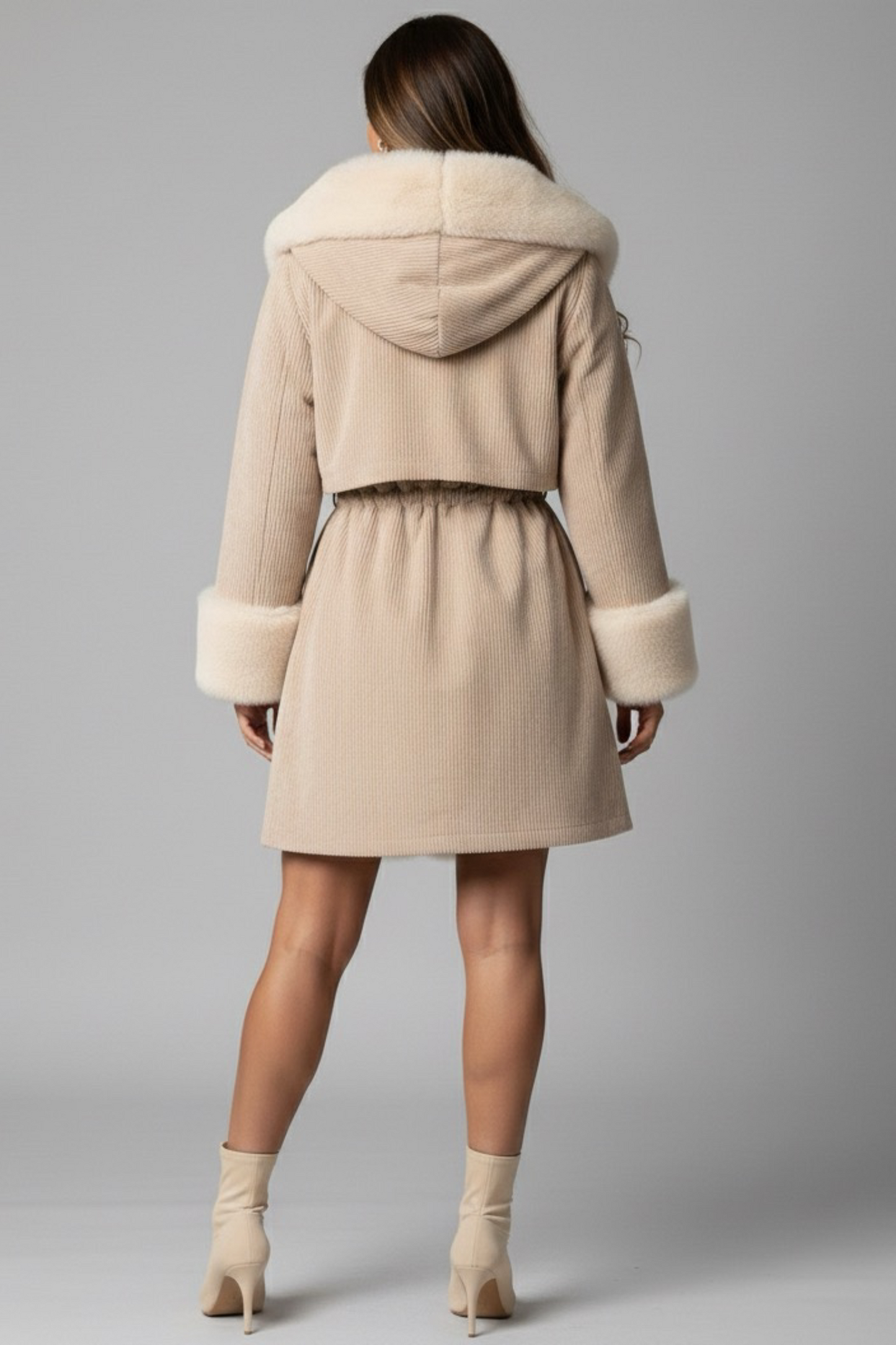 • Luxurious Faux Fur: Stunning oversized fur collar and cuffs for ultimate warmth and style.