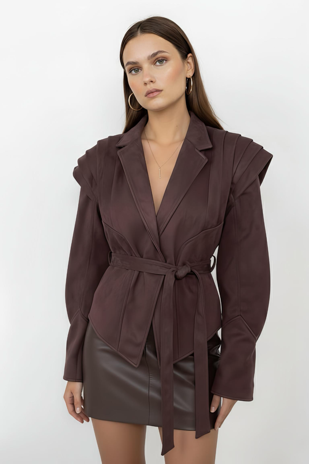 SAHARA SCULPTED MULBERRY BROWN SUEDE-LOOK JACKET