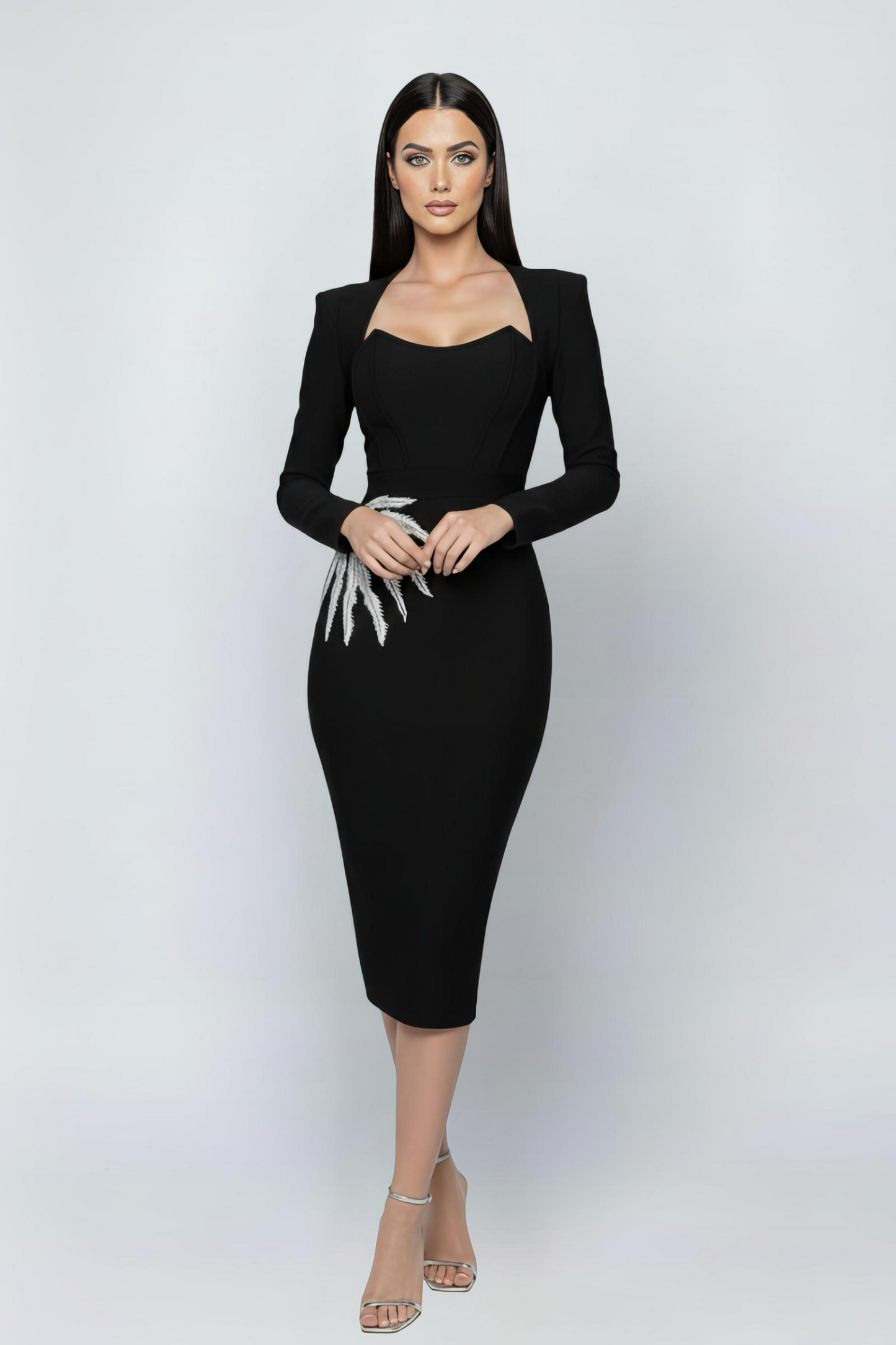 RITA BLACK EMBELLISHED MIDI DRESS