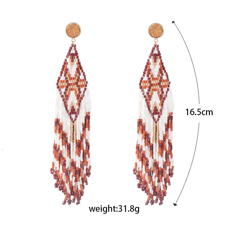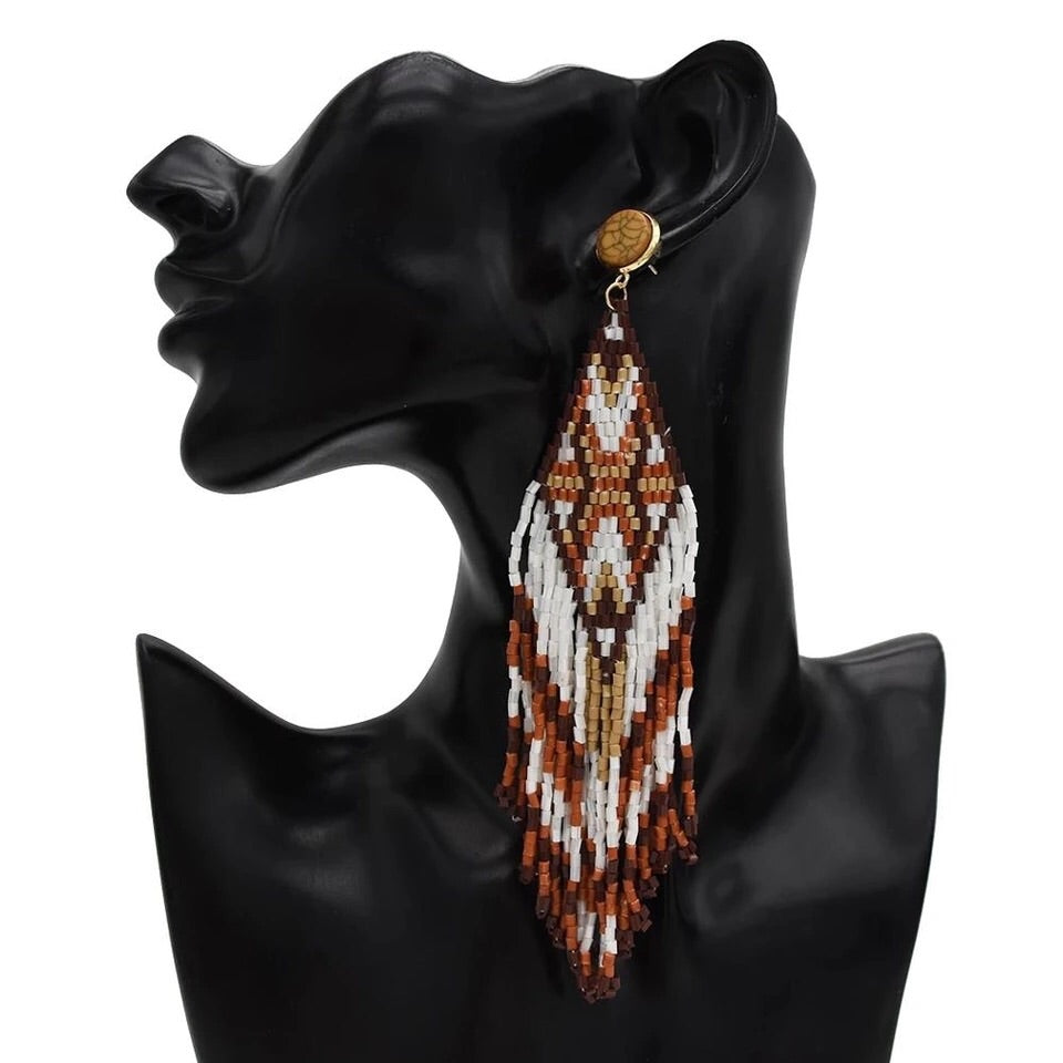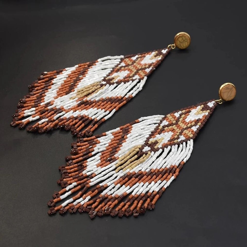 Boucles d'oreilles goutte marron perlées à la main.