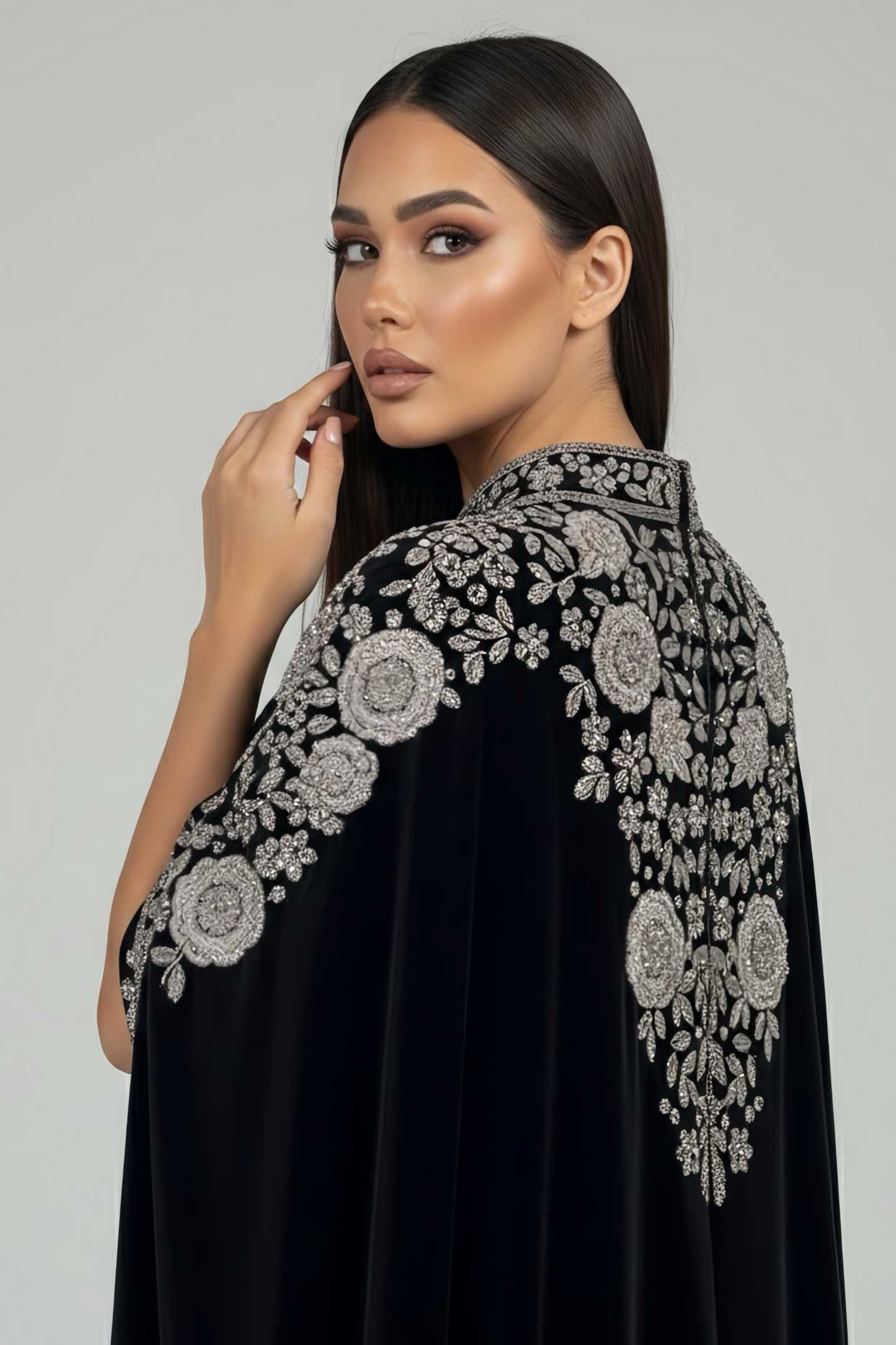 ALMAS SILVER EMBELLISHED ABAYA