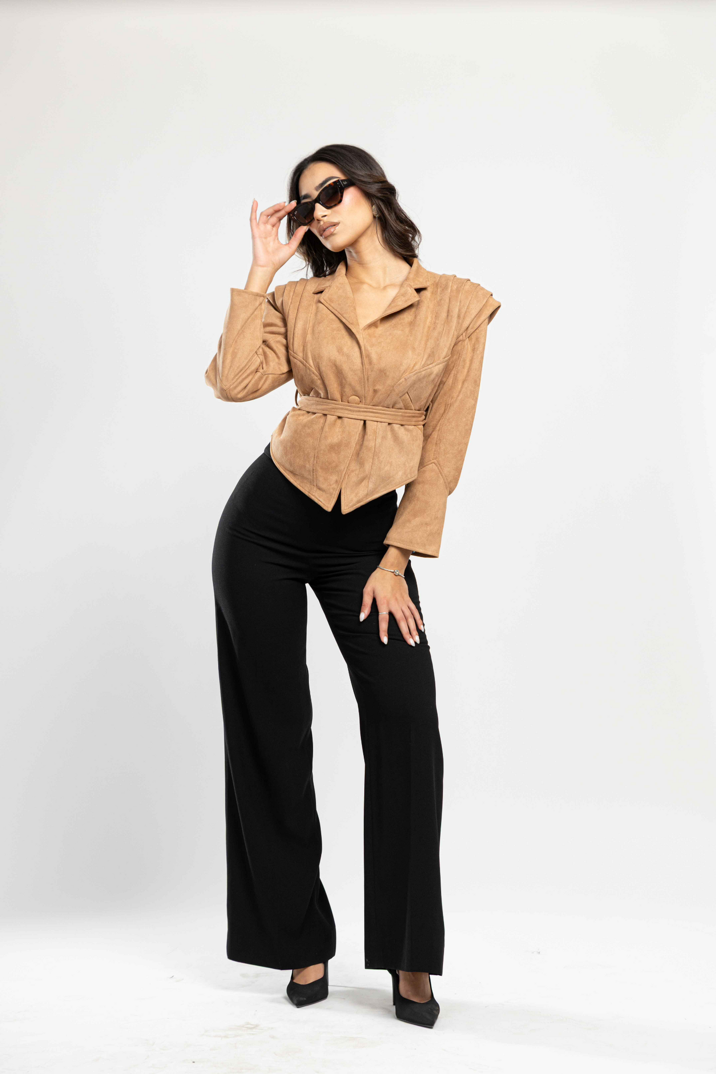 SAHARA SCULPTED CREAMY BEIGE SUEDE-LOOK JACKET