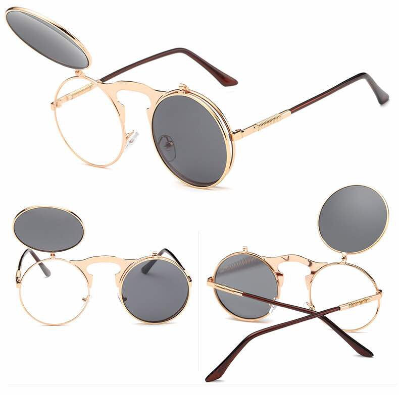 OBTENEZ-LE COUVERT avec ces nouvelles lunettes rondes Rétro Vintage. Elles sont disponibles en or, or rose, argent et noir total. Protection UV 100 %.