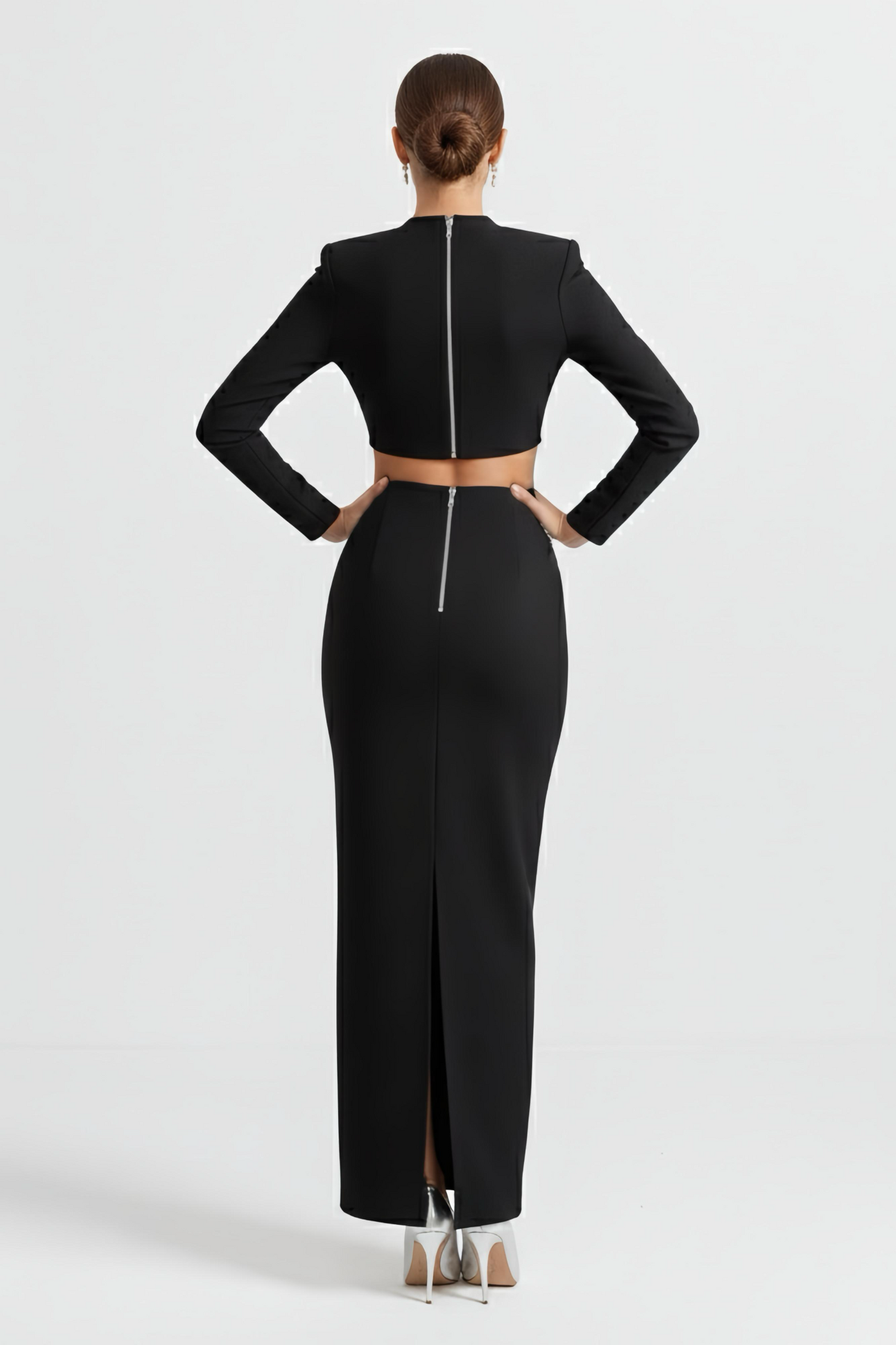 FREYA CRYSTAL EMBELLISHED BLACK MAXI SET