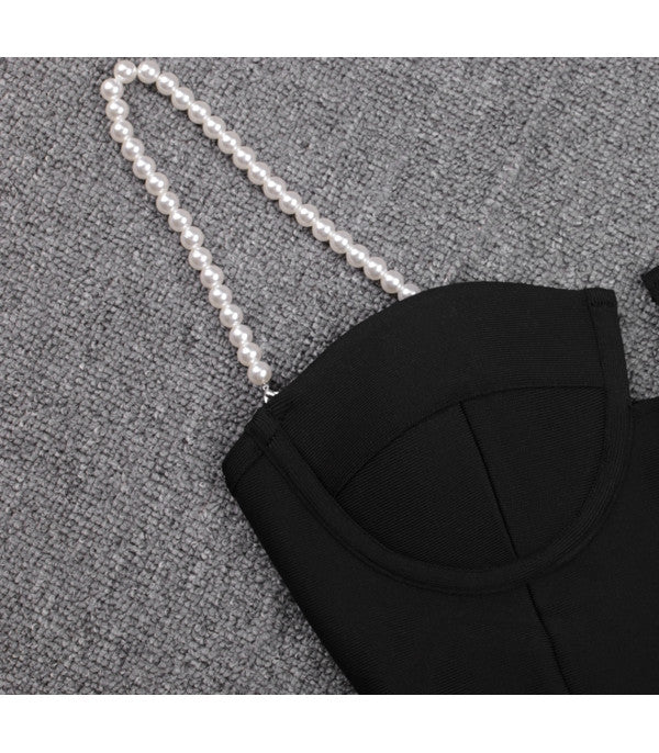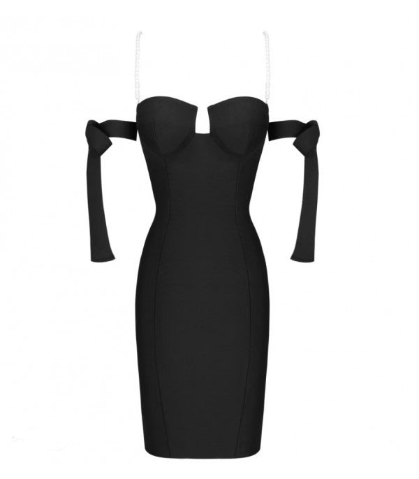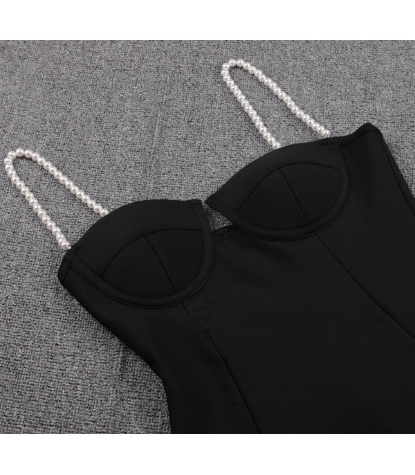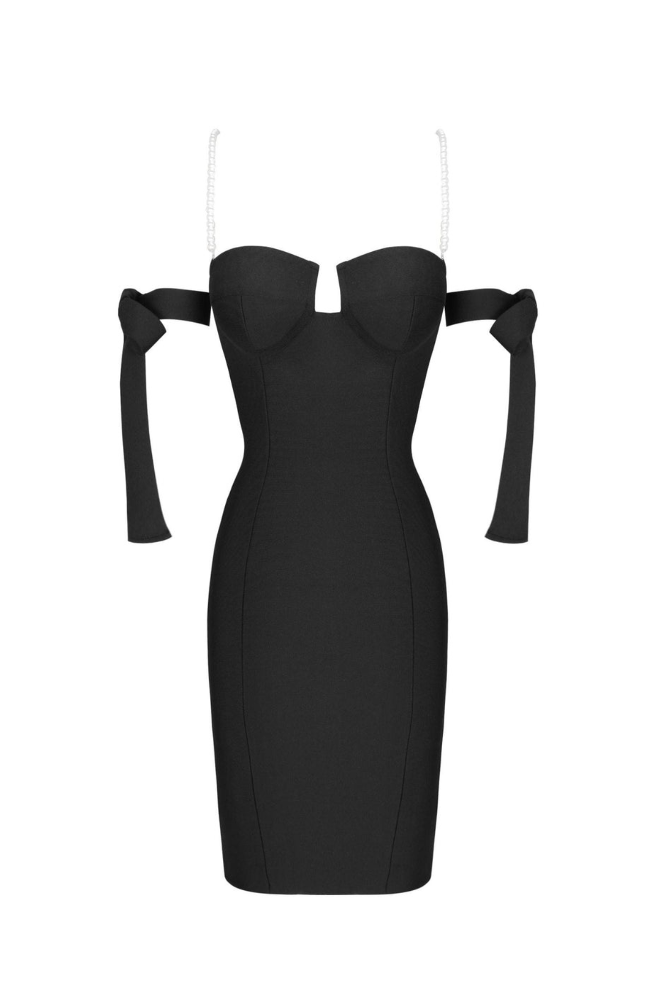 ROBE MIDI NOIRE À DÉTAILS PERLES LOANNA