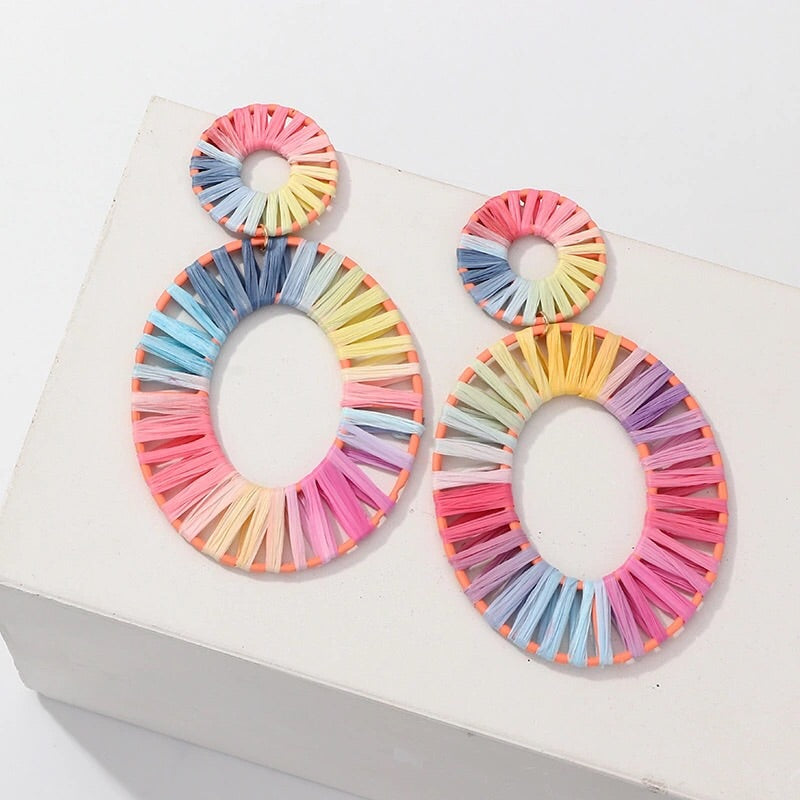 Boucles d'oreilles longues multicolores en perles faites à la main.