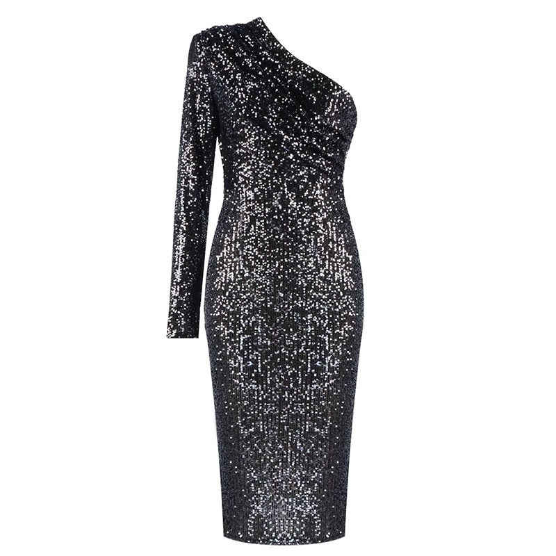 Be GLAMOROUS!! In our new ARIANA dress! Featuring a single shoulder design in a sequin material making this dress perfect for the holidays!