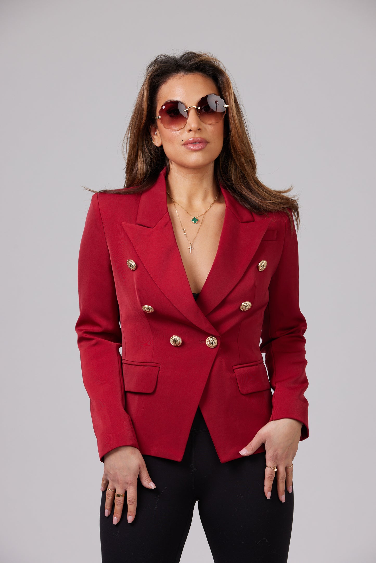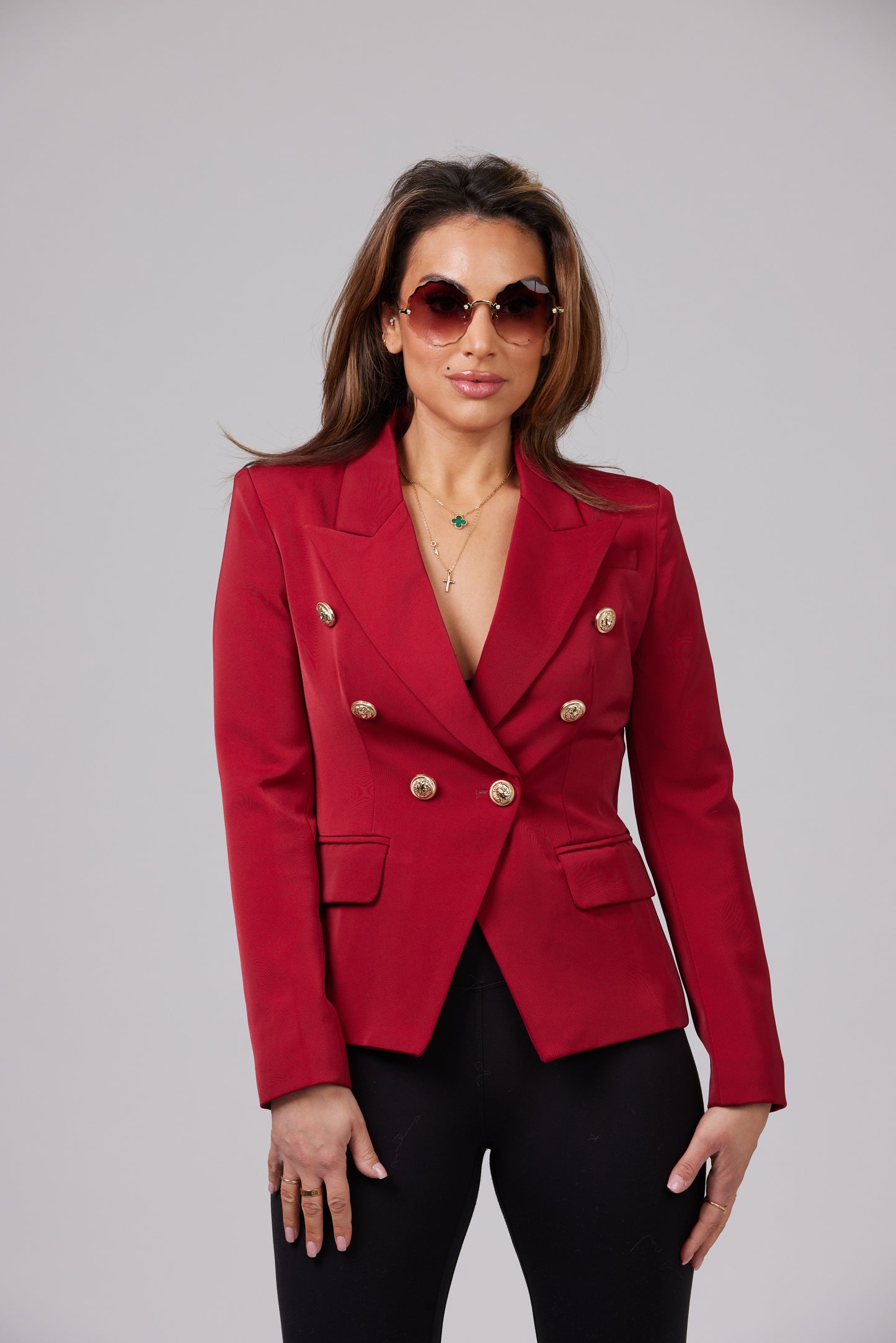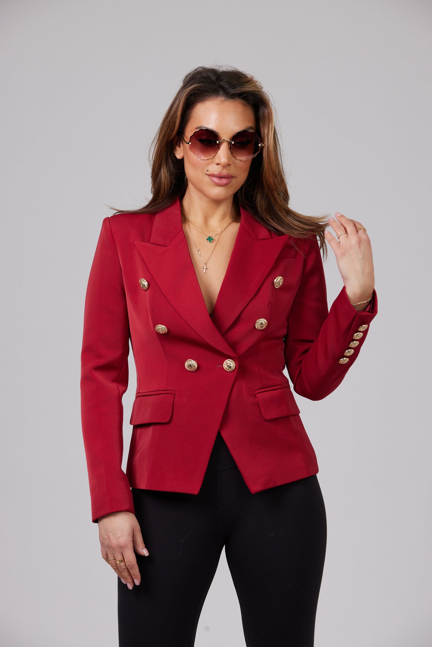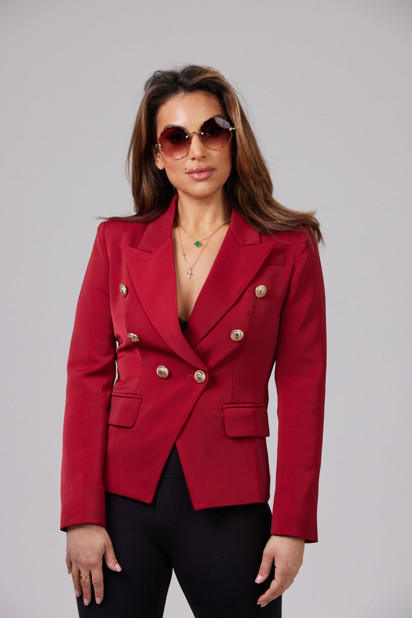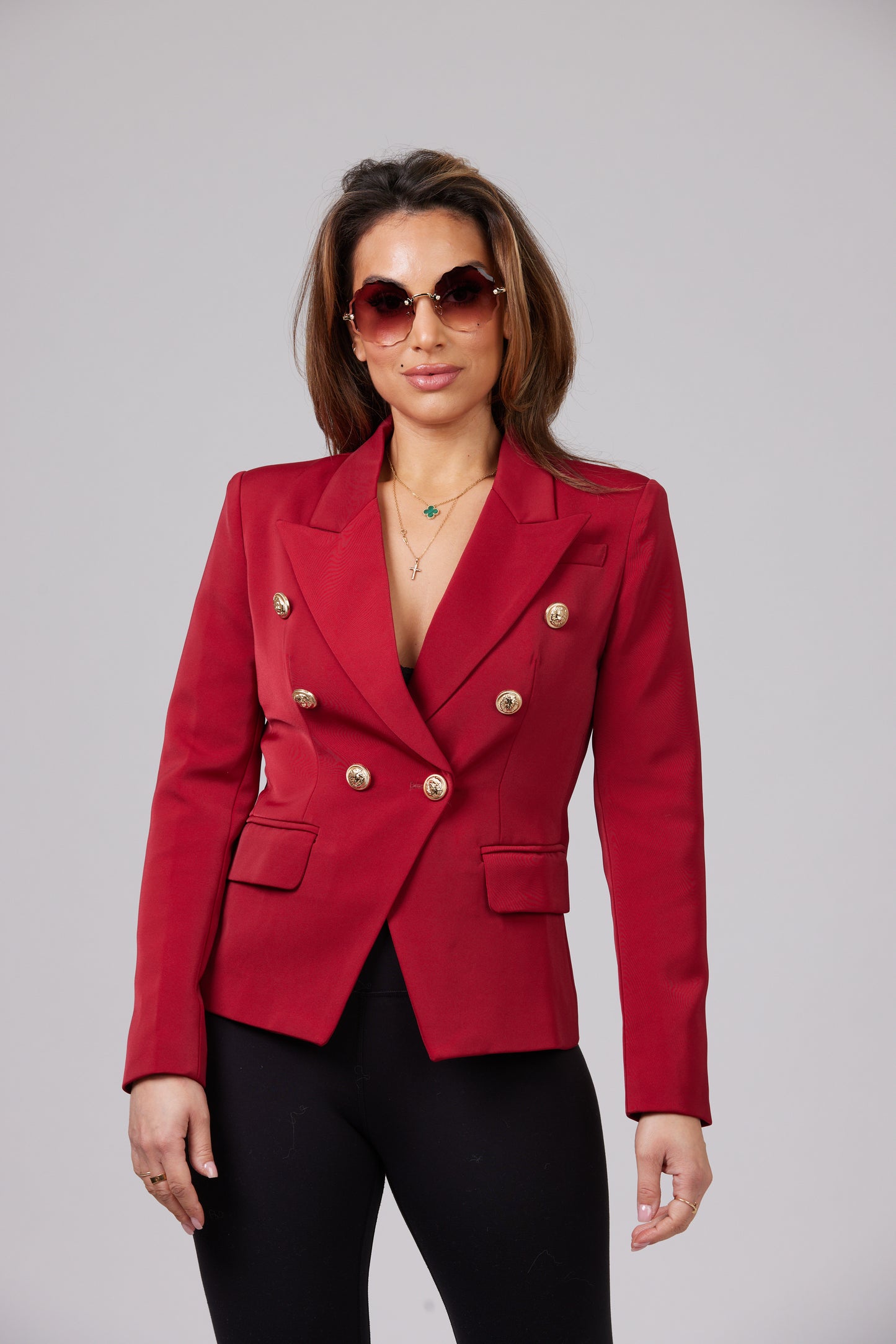 ICONIC BURGUNDY WITH GOLD BUTTONS BLAZER