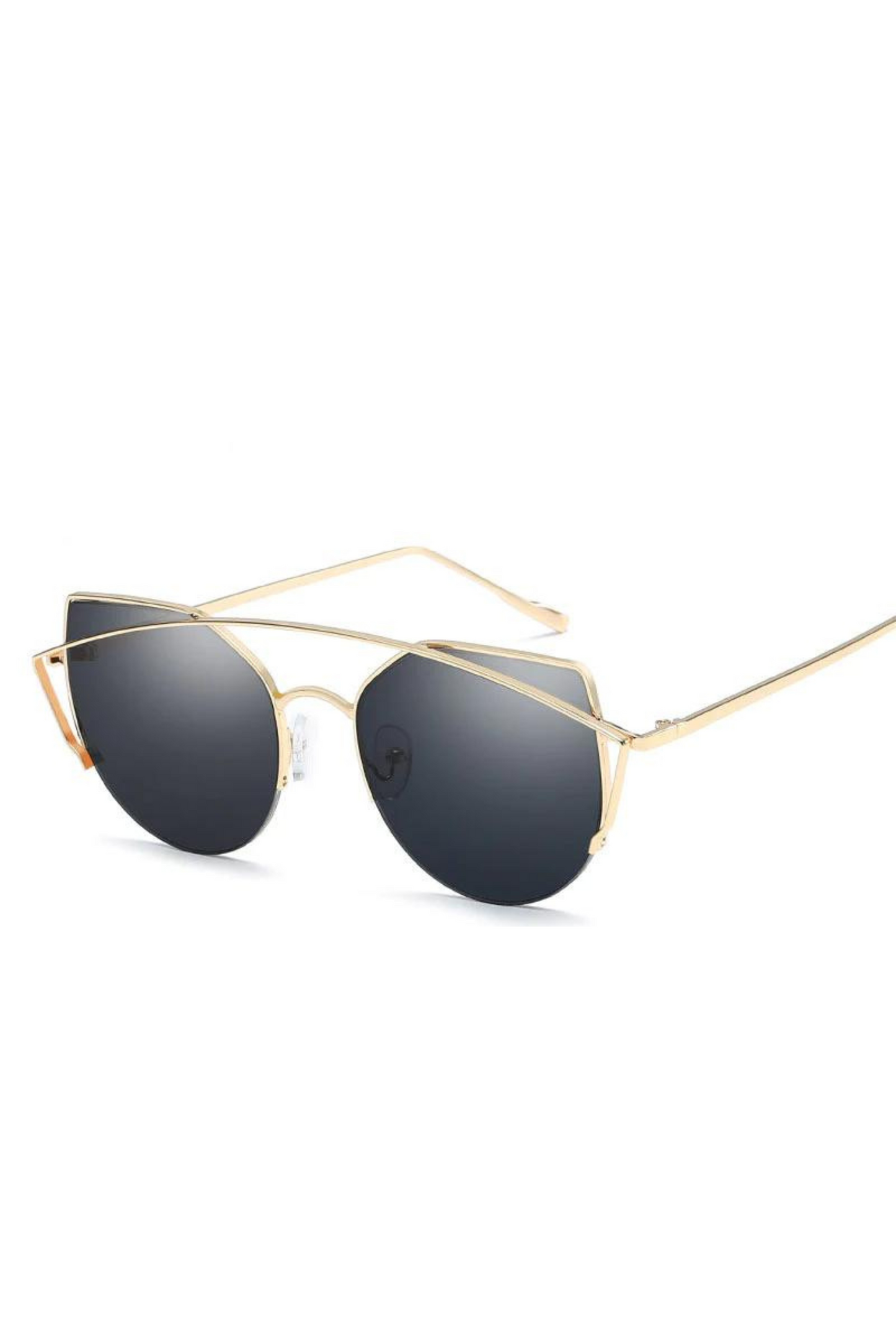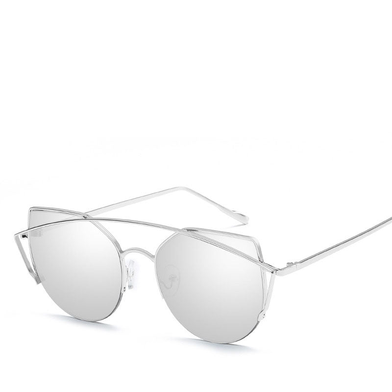 Regular price £ 24.00 GBPThe silver shades are styled with mirrored lens, these cat eye frame sunglasses are so modern. Polished silver-tone details.