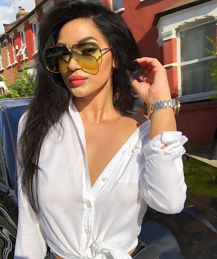 These are the SHMIA model, oversize shades with clear lenses. You will definitely not get unnoticed with these shades.